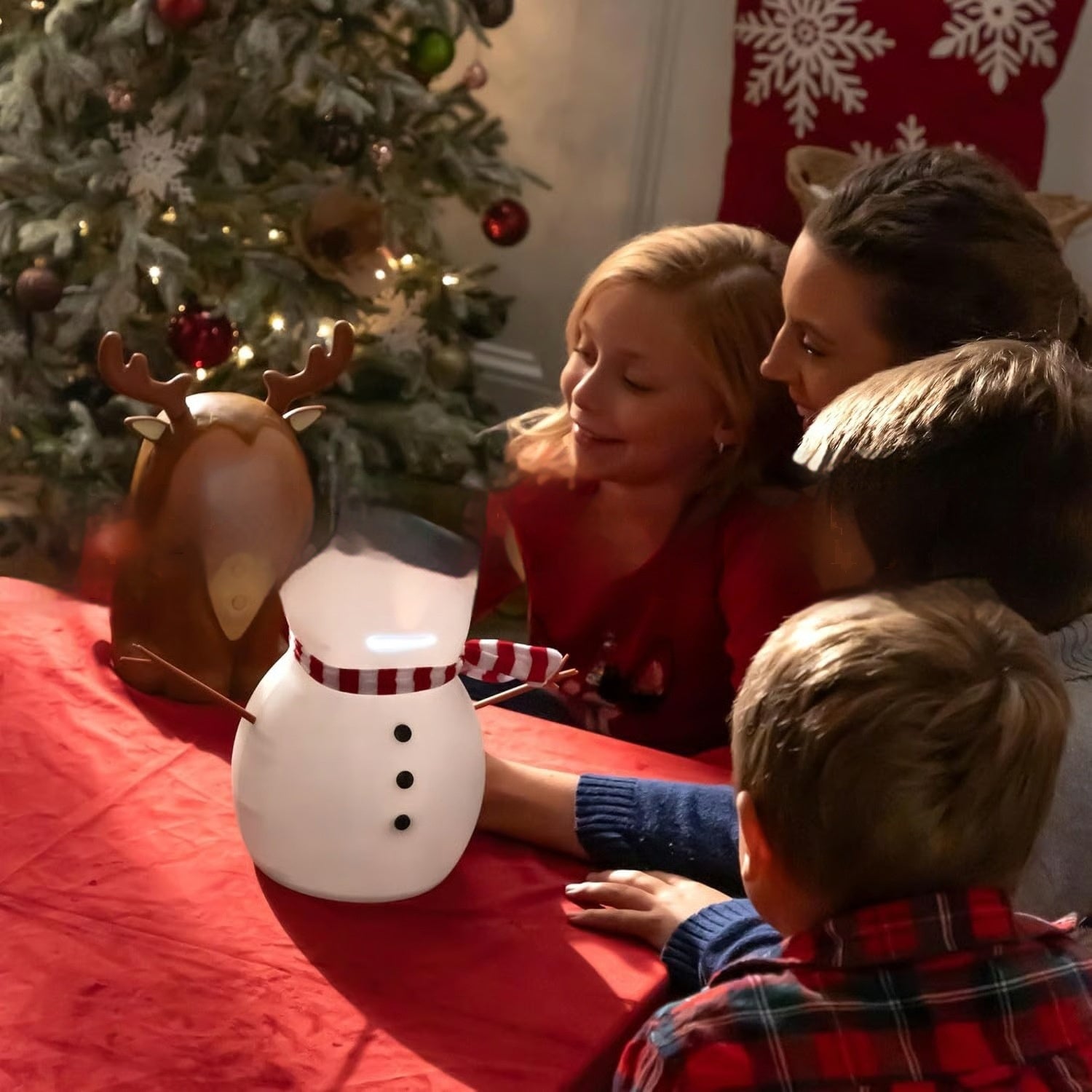It's not only an adorable decoration but also an interactive companion that combines the functions of a projector, a speaker, and a comedian!No Settings required. Just one click to start a 30-minute singing and dancing talk show, allowing children to sing and dance at the same time. This winter won't be lonely anymore!